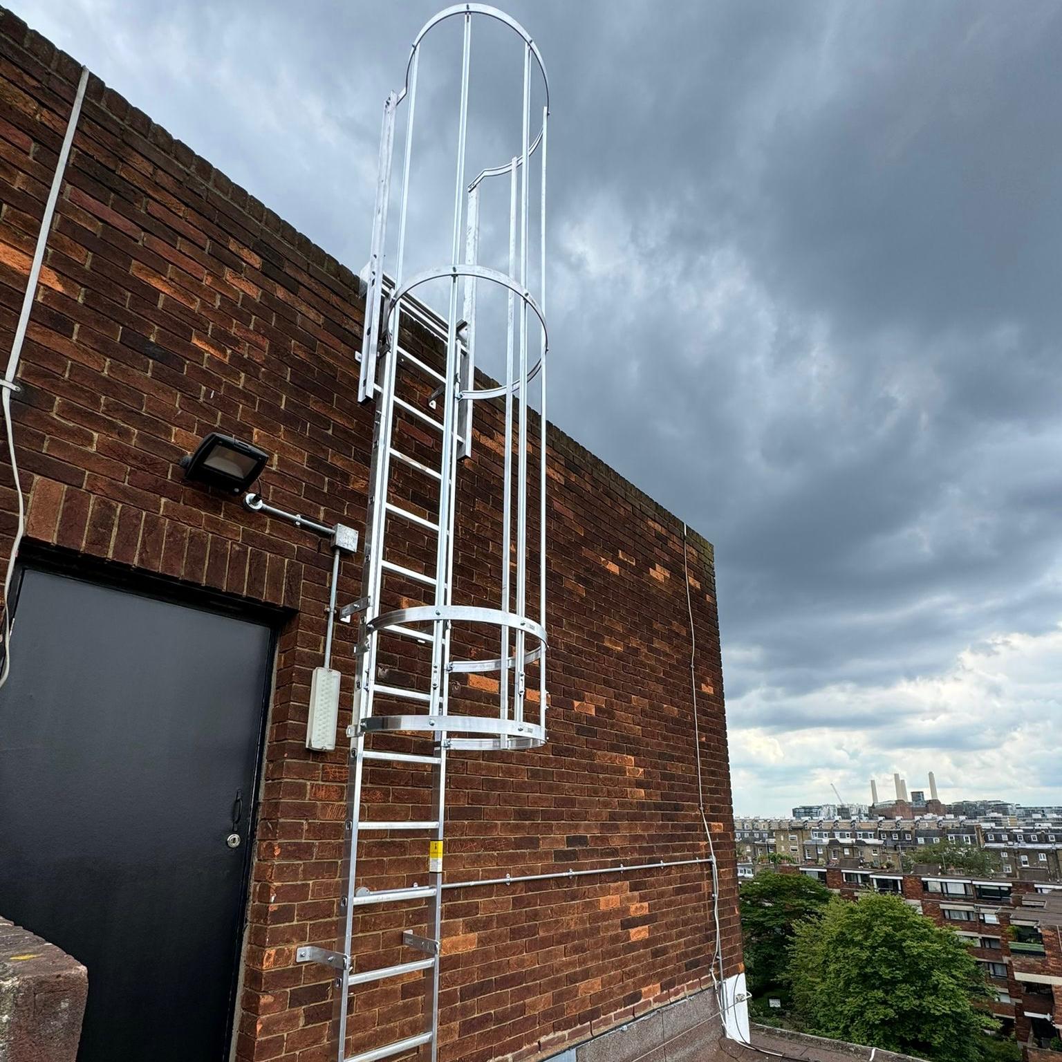 A fixed access ladder fitted with a safety cage offers a practical form of passive fall protection by helping guide the user and reducing the likelihood of backward falls. When installed correctly, caged ladders provide a reliable solution for accessing rooftops, plant areas and service levels across commercial buildings.